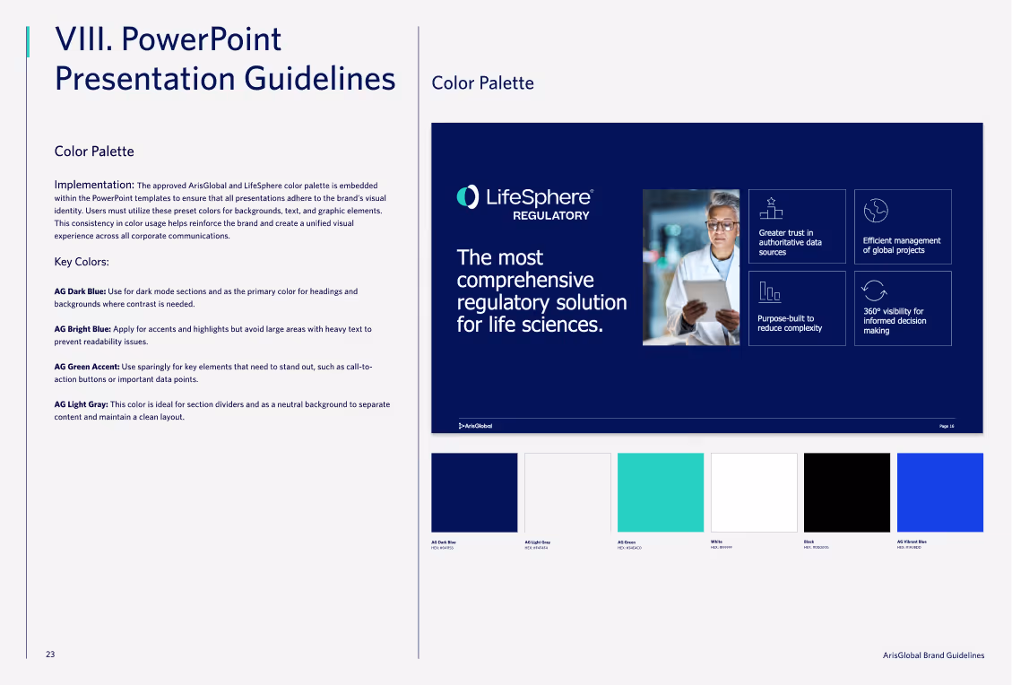 ArisGlobal evolved from a single master brand into a corporate brand behind a product suite: LifeSphere. The challenge was not just a visual refresh. It was building a usable brand system across sales, marketing, web, and partner channels.