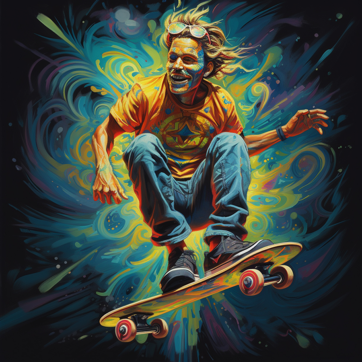 Skate culture has always been about remixing reality. This is my version — bright, loud, a little surreal, and unapologetically playful.