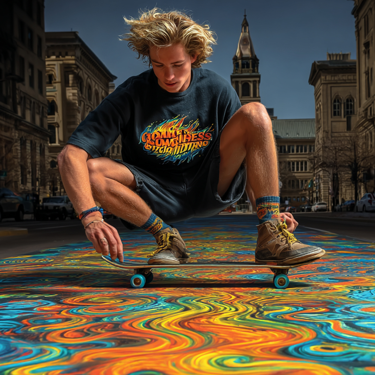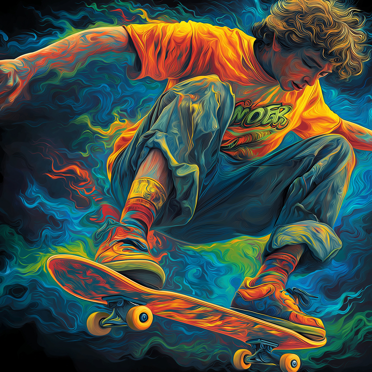 A psychedelic love letter to skate culture. 80s nostalgia, sun-faded colors, and motion turned into illustration — built around pure vibe and the energy of rolling forward.k for turning everyday moments into viral campaigns.